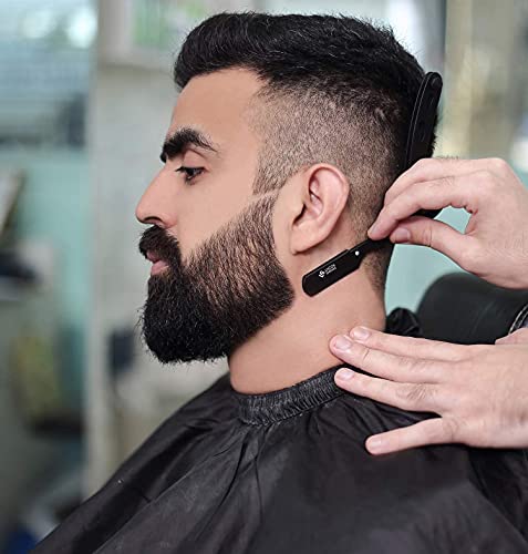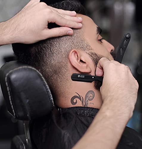 🪒 ERGONOMISCH Entwickelt: Professioneller Cut Throat Razor bietet eine gute Leistung und bietet den richtigen Haltewinkel, um Beschwerden zu vermeiden. Beim Öffnen ruht Ihr Ringfinger auf der hinteren Griffschlaufe, der Zeige- und Mittelfinger oben und Ihr Daumen in der Nähe des Klingenfachs. Das Friseurrasiermesser eignet sich für die Konturen, Hals-, Kiefer- und Wangenlinien Ihres Bartes oder für eine vollständige Rasur.